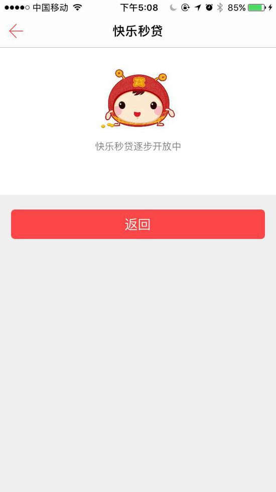 另外,“e钱庄”并不能提供贷款业务,尽管其页面有显示“快乐秒贷”,但点开提示逐步开放中,也没有其他额外说明,该功能暂不能使用。