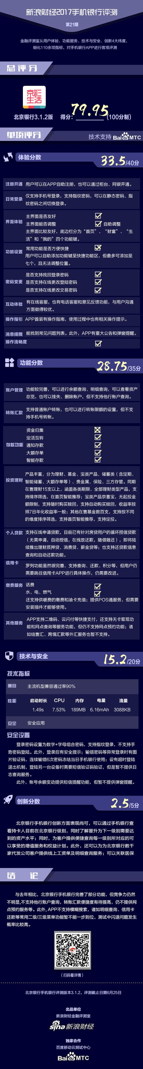 与去年相比,北京银行手机银行完善了部分功能,但竞争力仍然不明显。APP不支持他行账户查询,转账汇款便捷度有待提高,仍不提供网点预约服务等。
