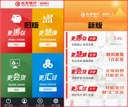 北京银行直销银行APP上线了四大类产品,分别是更惠存、更惠赚、更会贷和更汇付。