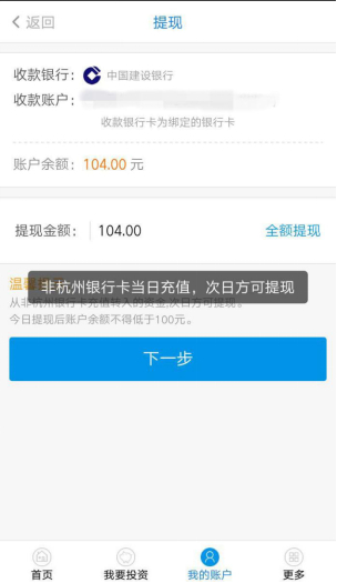 资金体验方面,APP支持银行卡实时转入且有短信提醒,但非杭州银行卡当日充值,资金次日才能提现,这点远落后于其他银行。