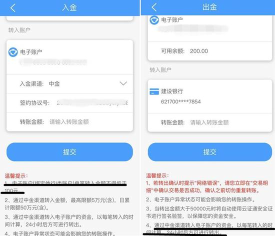 转账体验非常糟糕,支持绑定卡资金转入和转出,除此之外,槽点多多:1、转账前需要签约安心签,入金采用中金渠道;2、转入有门槛,最低100元;3、转入资金不需要密码,这点有些骇人听闻了,感觉资金安全性备受考验;4、当日转入资金24小时后才可以转出;5、资金变动无提醒。