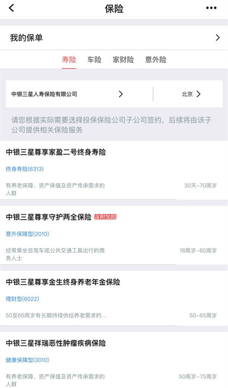 中国银行APP设有“理财”板块,而且沿袭首页风格可以定制。APP银行理财种类丰富,覆盖短、中、长期;余额理财有单独板块,上线了3款货币基金,其中中银活期宝收益率可观;基金板块代销2800多只基金产品,支持筛选、定投等。此外,APP上线了保险、债券产品,也支持银证/银期服务,贵金属、外汇交易比较有优势。不过,保险等页面还是比较原始的列表式。