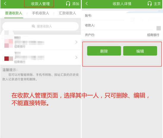转账汇款方面,邮储银行APP支持银行卡/手机号转账,可以智能读取银行、切换转出账户、展示可用余额;也支持实时、延时、次日转账;此外,转账完成后也提供转账电子回单且支持转发分享、也可以进行收款人管理。但是,无法直接查询转账记录,需要在交易明细中查看,而查询转账记录是一个相对高频的功能需求。此外,用户在“全部”功能中进入“收款人名册”可以进行收款人管理,但无法联动转账汇款。为何不可以在搜索收款人后直接转账?细节方面仍未做足。