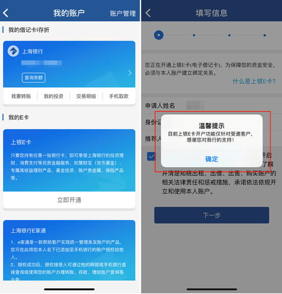 上海银行手机银行注册开通方式比较便捷,本行和非本行用户都可以在线注册开通,且支持OCR技术识别身份证和银行卡信息。不过,非本行用户暂时无法绑卡、无法开户,上海银行客服表示因功能不稳定暂时下线该功能。
