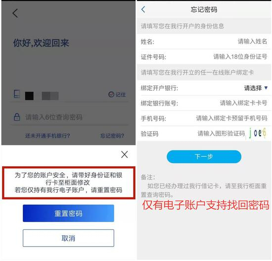 值得注意的是,浦发银行APP登录密码为查询密码,并不支持登录时忘记密码找回(需前往银行柜面),此种安全登录策略并不常见;但仅持有二类电子账户,可以在线找回密码。
