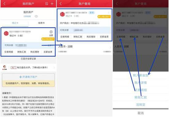 中信银行APP常用操作便捷,诸如账户查询、转账汇款、生活缴费等多项功能可实现一步到位。APP常用功能之间也进行了关联,诸如查询账户关联交易明细、转装汇款、购买理财等功能;转账完成后关联继续转账、交易明细、查询余额。