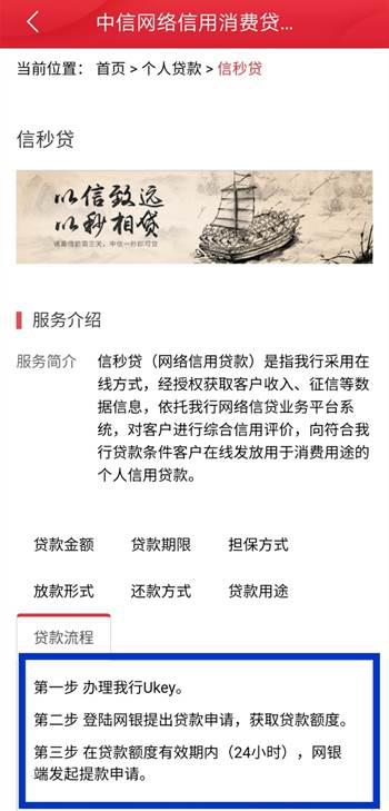 贷款方面,中信银行APP对于贷款产品种类包括不动产抵押、信秒贷、汽车贷款、金融资产质押;贷款产品介绍比较详细。但是,支持手机银行在线申请的贷款种类较少。