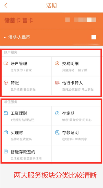 但美中不足之处在于,借记卡账户查询的交互中,转账作为一个较常用功能,放在了“他行卡转入”后面,业内也鲜有此种设置。