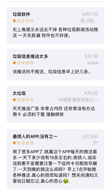 其他体验方面,平安口袋银行APP设有“消息中心”,整合了银行公告、竞选活动、借记卡交易、信用卡服务等N多消息服务,可以开启/关闭消息推送服务。值得注意的是,APP可以弹窗推送各种消息,但动账消息不弹窗。不少用户在各大应用商店吐槽APP推送过多,且内容多是理财、广告。
