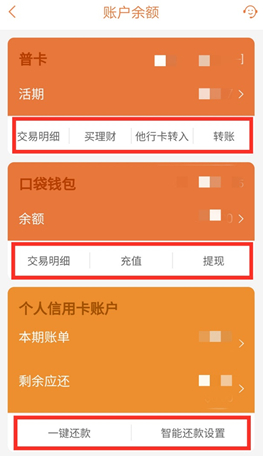平安口袋银行APP常用功能操作较为便捷,查账、转账、信用卡服务、投资理财、扫码支付等功能均可一步到位。常用功能之间的关联也较为合理,如借记卡账户查询关联交易明细、买理财、他行卡转入和转账功能等,信用卡关联账单、还款等。