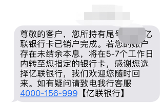 亿联银行APP支持注册手机号变更,变更前有提示,变更流程清晰。APP支持在线注销账户,销户体验较好,注销提示清晰,在注销后有短信提醒,并且余额可自动返回指定账户。