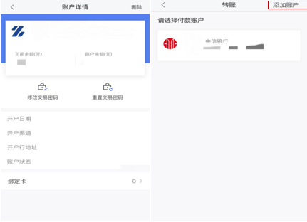 绑定卡变更方面,用户可以在“我的→我的银行卡”,选择“本行卡→详情”进行绑定卡的添加或者删除,但变更绑定卡的位置不明显,新手用户难以找到。