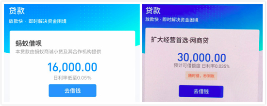 网商银行APP上线的贷款产品主要为“蚂蚁借呗”,以及针对小微企业和个人创业者的经营性贷款“网商贷”。