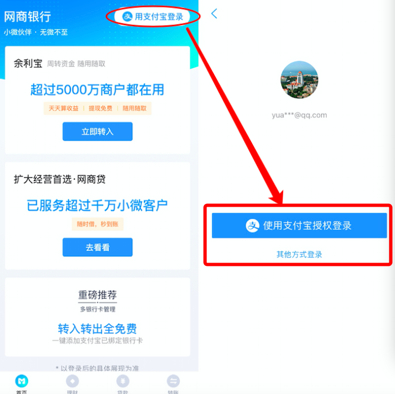 如果你是支付宝用户,那初次使用网商银行APP可以绑定支付宝账号授权登录,十分便捷。但如果你还不是支付宝用户,则需要先注册支付宝。