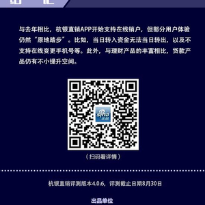 与去年相比,杭银直销APP开始支持在线销户,但部分用户体验仍然“原地踏步”。比如,当日转入资金无法当日转出,以及不支持在线变更手机号等。此外,与理财产品的丰富相比,贷款产品仍有不小提升空间。