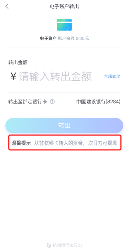 资金体验方面,在APP“我的”界面内有醒目的“转入”和“转出”入口。在转入资金的过程中,可以看到单笔限额,转入后会有短信提醒。但从非杭州银行卡转入的资金,次日才能提现,这一点较去年没有任何改进,依旧远远落后于其他银行。