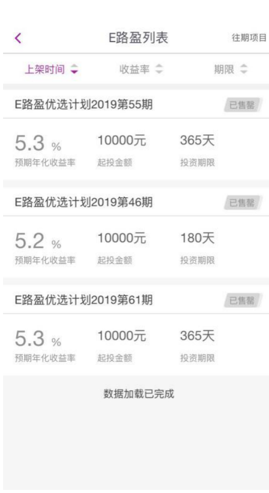 其中“E路盈优选计划”是主打产品,年化收益为5.3%左右,但上线产品期数不多,评测期内已有产品都处于“售罄”状态。