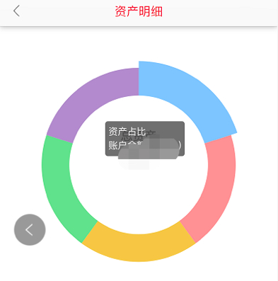 APP资产展示清晰,有图形化显示。值得一提的是,还可以点击图形化资产展示的每一个单独色块,查看具体比例。
