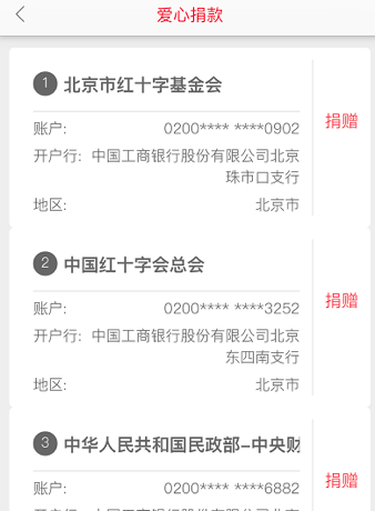 在其他特色服务方面,APP上线了“爱心捐赠”板块,用户可以点击“捐赠”,向红十字会总会等机构捐款。