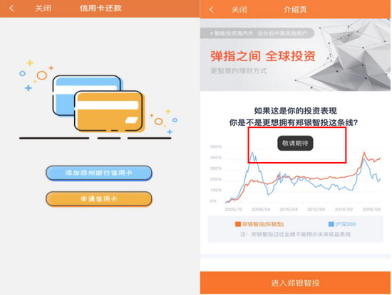 APP生活服务建设较好。APP上线了支持扫码支付,也有水、电、燃气、暖气、通用缴费等服务,但目前部分业务仅支持河南省内用户办理。此外,相比去年,APP增加了信用卡还款功能,但只支持本行卡。在其他特色方面,APP虽然设有“郑银智投”板块,但实际并未上线。