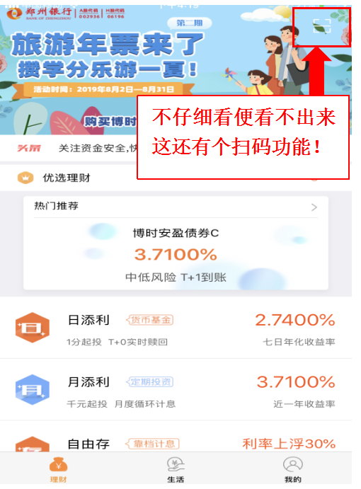 在界面体验方面,APP主界面设计一般,“理财”页面顶部的广告和功能键叠加在一起,令人看不清功能键位置,此处设计令人眼花。APP栏目设置较清晰,主界面底边栏分为“理财”、“生活”和“我的”三个板块。