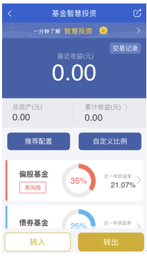 在其他方面,APP还上线了零钱宝,这是一款智能组合产品,用户输入申购金额,系统可智能分析组合配置。