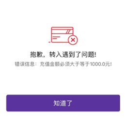 用户体验:资金转出时效性增强 但转入仍有“1000元起”的门槛