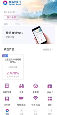 桂银直销APP资金转入千元以下“不营业” 存贷产品较匮乏