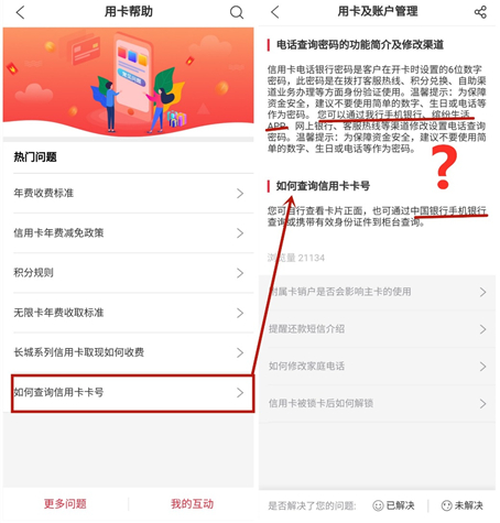 值得一提的是,缤纷生活APP在“用卡”频道中部滚动图提示“用卡帮助”,用户点进去可以查看/搜索问题获取帮助。但可惜的是,部分热门问题的解决方案指向手机银行APP。