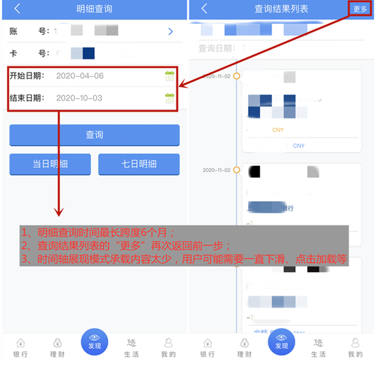 渤海银行APP“我的账户”可以进行本行、他行账户查询和管理,其中,APP自动下挂本行账号,但不可解绑,他行账户查询需在网上银行申请办理。对于单张卡,用户可以查余额、查明细、查卡号;也可以进行升降级、挂失;还可以设置交易安全锁、开启/关闭小额免密等。其中,交易明细采用了时间轴的方式展现(最长时间跨度6个月),但如果交易笔数多的话,此种展现方式需要一直下拉,不够直观。此外,不支持按交易类型等筛选交易明细,也不支持资产/负债查询。