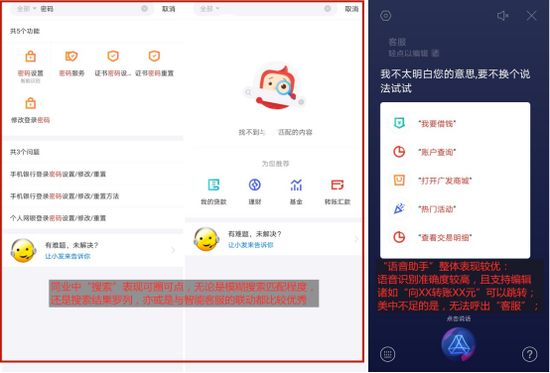 去年底,广发银行APP推出5.0版,升级了语音服务,搜索体验可圈可点,但客服、消息互动逊色不少,交易明细查询等功能点仍待优化。此外,界面有些过于绚烂,部分交互仍有提升空间,用户体验颗粒度不够细,隐私保护也亟待加强。