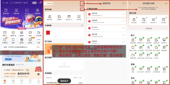 其中,“常用功能”采用了“9+1”的十宫格模式,用户点击“首页→全部”可以查看/搜索全部功能。值得注意的是,App“首页→常用功能”不支持自定义,而“二楼→我的功能”支持自定义0-4个常用功能。值得思考的是,“首页”和“二楼”如何定位更符合用户习惯?在“二楼”有“最近使用的功能”情况下,“我的功能”又该如何定位?