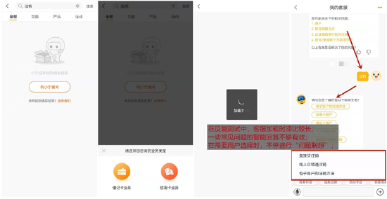 值得注意的是,App在注册/登录旅程中设有在线客服入口,但需要登录后才能进入智能客服,实用性不足。