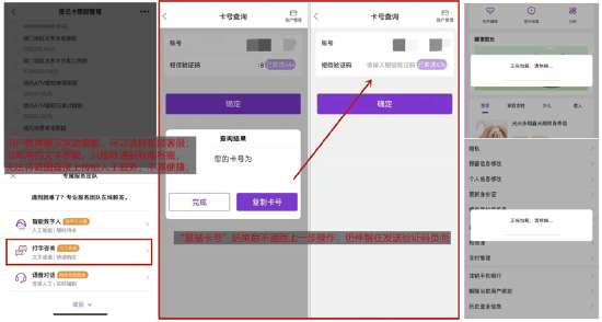此外,App一些交互设置略繁琐,仍需打磨完善,比如智能客服“无帮助”时的交互繁琐,查询复制卡号后不返回。特别是,同一网络同一机型,光大银行App部分操作加载速度比较慢,偶有闪退发生;在兼容性测试中,个别安卓机型未通过。