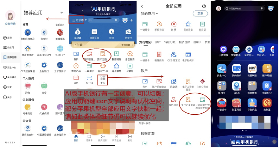 从App发展和创新来看,中国建设银行App升级到了5.0版,重构了5大频道架构,AI手机银行有一定创新性。从用户体验维度看,搜索、客服有了较大提升,但注册登录、消息中心有提升空间,部分交互层级区分度不够、提示也不够充分;从产品功能维度看,App转账汇款等功能有所优化,微应用比较丰富但有些杂乱,不少功能细节也处理不到位。整体来看,中国建设银行App相较往年有了较大的改变,但仍需聚焦核心功能、向“精”发展,找到抓手寻求突破。