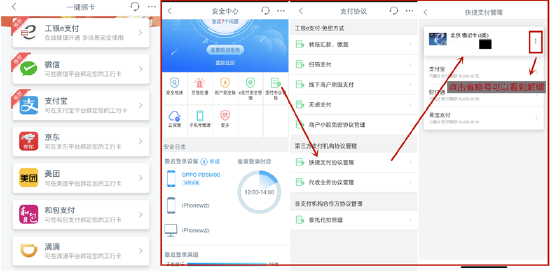 值得注意的是,中国工商银行常用功能线上化程度比较高,但仍需站在用户角度去整合去优化,以较为常用的“一键绑卡”为例,绑卡之后的另一动作可能是更改限额/解绑,但App把相关功能整合在了“支付协议→第三方支付机构协议→快捷支付协议”管理中,从银行业务流程看非常合理,但从用户角度看就不那么合理;诸如“我的支付”与“工银e支付”,既不一样又有重合,用户并不好理解和记忆。