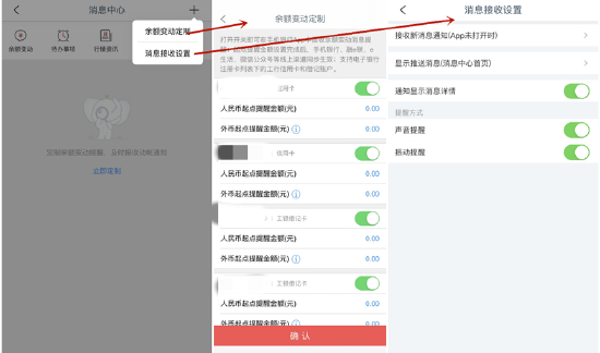 消息提醒方面,中国工商银行App“消息中心”整合了余额变动、待办事项、行情资讯、优惠活动,可以进行“余额变动定制、消息接收设置”。与去年评测时相比,App补上了“动账通知”的缺失,但单笔通知的可读性仍待提升:一是,正序排列不如倒序排列更符合用户习惯;二是,单笔通知缺乏交易对手信息,也不能点开查看详情。