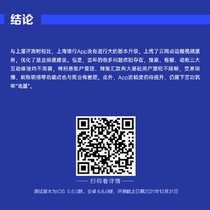 与上届评测时相比,上海银行App优化了“基金”等投资条线的建设,但是,账户、转账等基础功能仍待完善,交易明细、转账明细等功能点也与同业有差距,非金融场景也缺乏一个抓手。