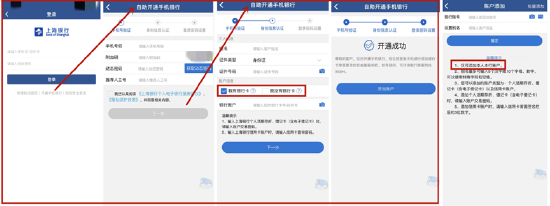上海银行App支持本行/非本行用户注册,用户输入手机号+短信验证码、认证身份信息(刷脸)、设置登录密码即可完成注册。值得注意的是,本行用户注册成功后可以添加银行卡,且支持OCR识别卡号等;但非本行用户无法添加账户/申请电子账户,系统会切换到信用卡版。