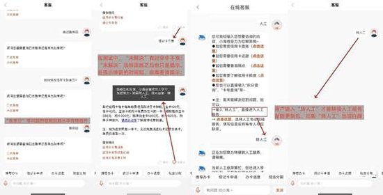 值得注意的是,用户只有输入“转人工”才有可能接入人工服务(“人工”不行),人工服务水平一般,与优秀同业仍有差距。特别是,后期测试中,多次出现白屏、无法转接的情况。