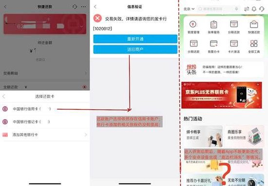 若用户旅程遇阻,App给出了一定的提示,下一步的接续水平一般,诸如添卡输错账号的接续引导有待提升。与上届评测时相比,App(iOS端)用户截屏后可以选择“咨询客服”转接人工服务(截图仍需增加图片处理功能)。