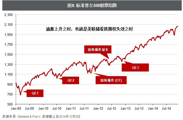 图8.标准普尔500股票指数此外,对于面临结构性问题的国家,若因经济的短暂反弹而放缓改革的步伐,低油价带来的短期利好,恐怕只是一剂甜蜜的毒药。当价格战结束,供应下滑,油价回涨时,面对联储加息和美元持续走强引发的资本流出,这些经济体恐将面临经济停滞与通货膨胀的双重困境。当各国央行因通胀上行再无力为投资者保驾护航时,全球金融市场的梦醒之日也将来临。