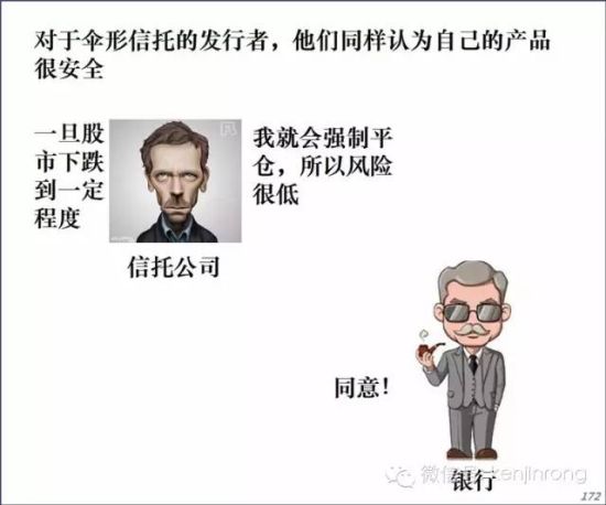 文/新浪财经意见领袖((微信公众号kopleader))机构专栏 啃金融 在整个股灾中扮演导火索角色的场外配资到底是什么东西呢?场外配资到底是如何操作的呢?伞形信托是场外配资资金的重要来源,在股市大好的时候,无论是信托还是银行,都很积极地发展伞形信托。但一旦股灾发生,伞形信托是很脆弱的。 伞形信托如何成为股市地雷 (本文作者介绍:)