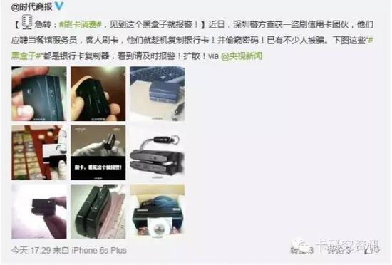 昨天,微博上有媒体发了一个消息,是关于警惕银行卡复制器盗刷银行卡信息的。这种新闻,网上近几年中已经发生了很多,一再提醒用户要注意在消费时要注意这种复制器,避免银行卡信息被盗。但是却忽视了一个重要的问题,就是有多少用户真的能识别出这种工具呢?