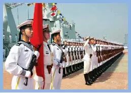中国人民解放军海军是中国人民解放军中以舰艇部队和海军航空兵为主体,现役兵力约24万人,占解放军总人数的10%。近年来中国人民解放军海军以新型航空母舰、新型驱逐舰、新型潜艇、新型战斗机为代表的新一代主战装备,以及与其相配套的新型导弹、鱼雷、舰炮,电子战装备等武器系统陆续交付使用。现在,人民海军已经拥有大型区域防空舰、核动力潜艇、AIP潜艇等世界先进武器装备,中国人民解放军海军航空兵现已装备了轰炸机、巡逻机、电子干扰机、水上飞机、运输机等勤务飞机。海防导弹形成系列,不仅有岸对舰导弹、舰对舰导弹,还有舰对空导弹、空对舰导弹、空对空导弹等。