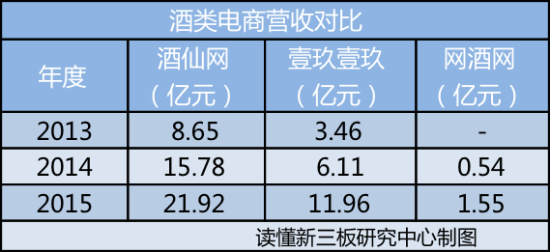 网酒网呢?该公司2015年营收1.55亿,目前的量级完全不能跟酒仙网和1919相提并论。