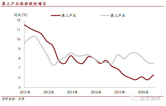 第三产业于二季度同比增长7.5%,连续八个季度高于第二产业增长,显示调结构措施继续取得成果。也表明了,即使工业下行压力持续,经济仍有新增长点。特别在国家深化供给侧改革下,未来第三产业对经济的支持将更为重要。事实上,第三产业于经济中的占比不断上升,上半年占GDP总量进一步提升至54%。居民收入增加是第三产业快速发展的一个支持,不过,全国居民人均可支配收入上半年增长6.5%,略微低于经济增长,表明了国家在收入分配改革中或需进一步完善。
