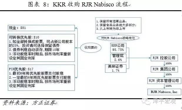 KKR的成功收购,垃圾债的作用可谓功不可没,在总交易金额250亿美元中,KKR自身资金仅有1500万美元,仅占总金额的0.06%,其余资金几乎都是垃圾债券大王米尔肯发行垃圾债券筹得,杠杆之高,令人惊叹。
