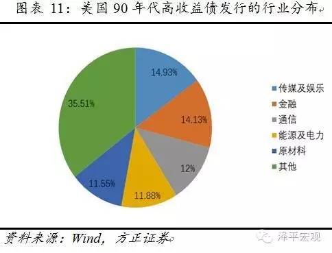 即使到了90年代,虽然垃圾债泡沫破灭了,但对垃圾债的市场认知已经被显著建立起来,并且有越来越多的行业开始参与到高收益债的发行中来。之前的高收益债发行以消费品(周期性及非周期性)、工业、金融服务业为主,而技术、能源等行业在90年代也开始通过发行收益率债来募集资金。从最近20年的美国垃圾债发行平均比例可以看出,垃圾债发行的行业比之前变得广泛且平均了很多。