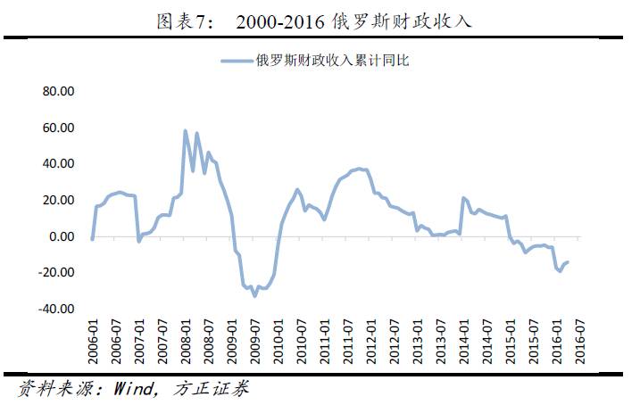 短期内卢布汇率的下跌缓释了俄罗斯国内的经济风险。俄罗斯RTS指数在14年12月触及629.15的底部后开始反弹,随着卢布币值的回升,RTS亦上升至1082的短期高点,上涨了72%。与此同时,房地产一手房价格也走出了震荡上行的趋势。俄罗斯一手房价格由2014年12月的51,714卢布每平米上涨至2016年6月的53,558卢布每平米,涨幅为3.6%。但是二手房价格在15年1季度触顶后逐步下行,由58,707卢布每平米下降至54,792,降幅6.7%。